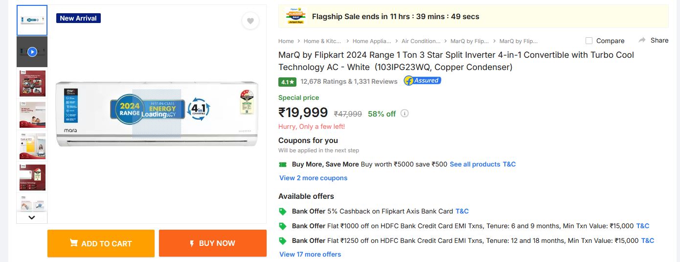 MarQ by Flipkart 2024 Range 1 Ton 3 Star Split Inverter 4-in-1 Convertible with Turbo Cool Technology AC 19,999/- only http://fkrt.it/xxeuJqNNNN