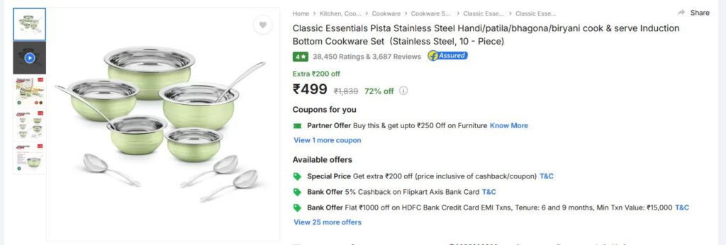 Classic Essentials Pista Stainless Steel Handi/patila/bhagona/biryani cook & serve Induction Bottom Cookware Set (Stainless Steel, 10 – Piece)