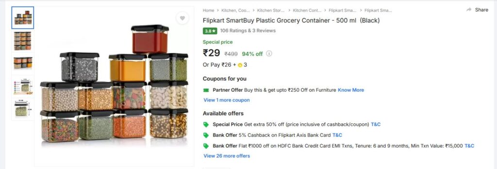 Flipkart SmartBuy Plastic Grocery Container – 500 ml (Black) AmazingLoot 2 years ago Flipkart SmartBuy Plastic Grocery Container – 500 ml (Black) https://fktr.in/wtw47la